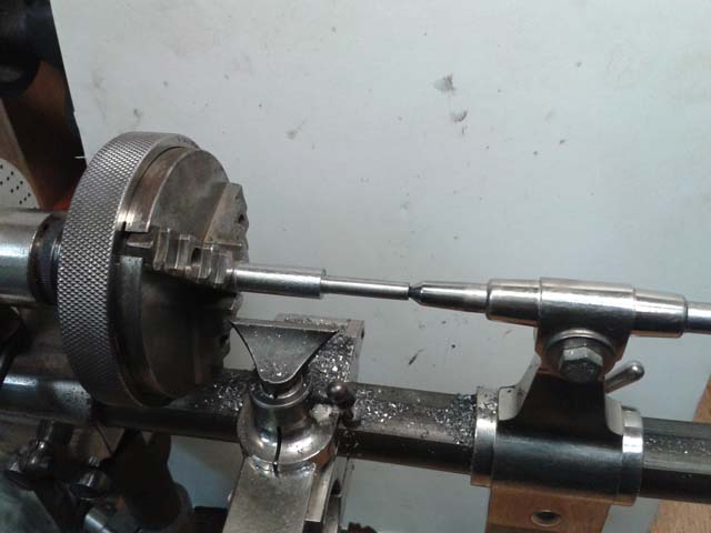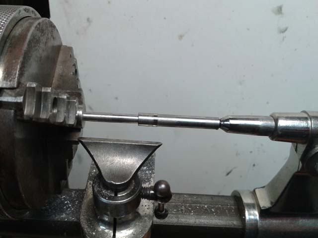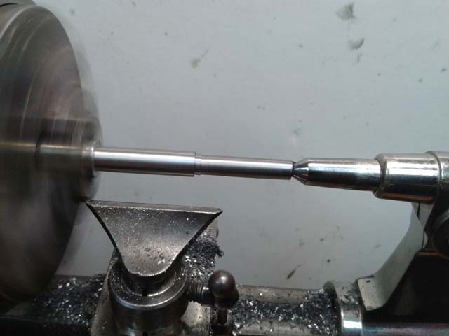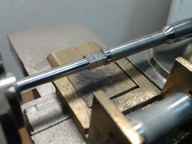 Comencé la labor por el extremo correspondiente a la sección cuadrada, torneándola a 3,25 mm de diámetro.